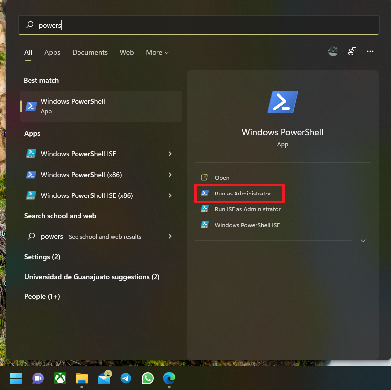 Using the start menu, search for PowerShell and select Run as administrator